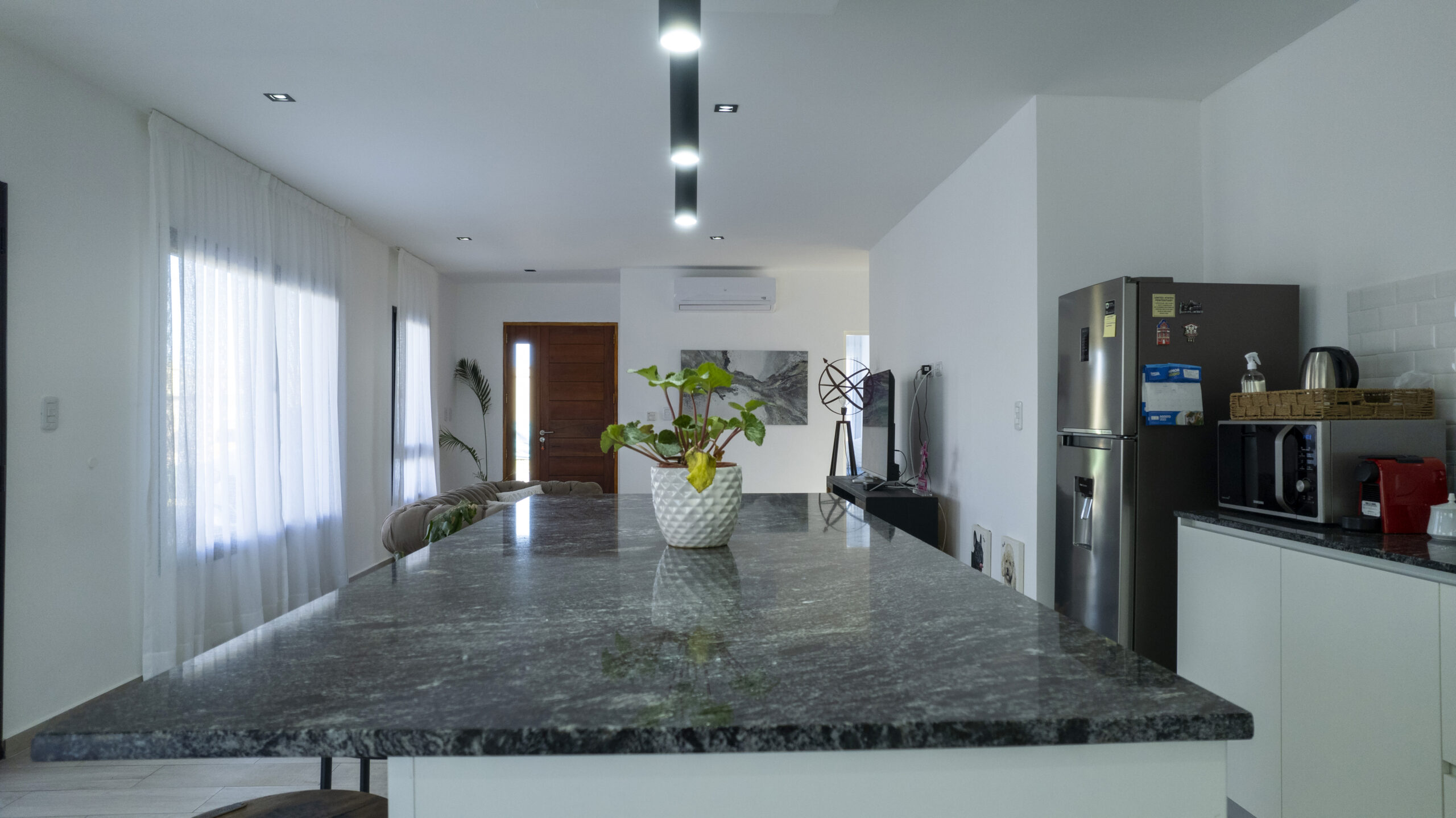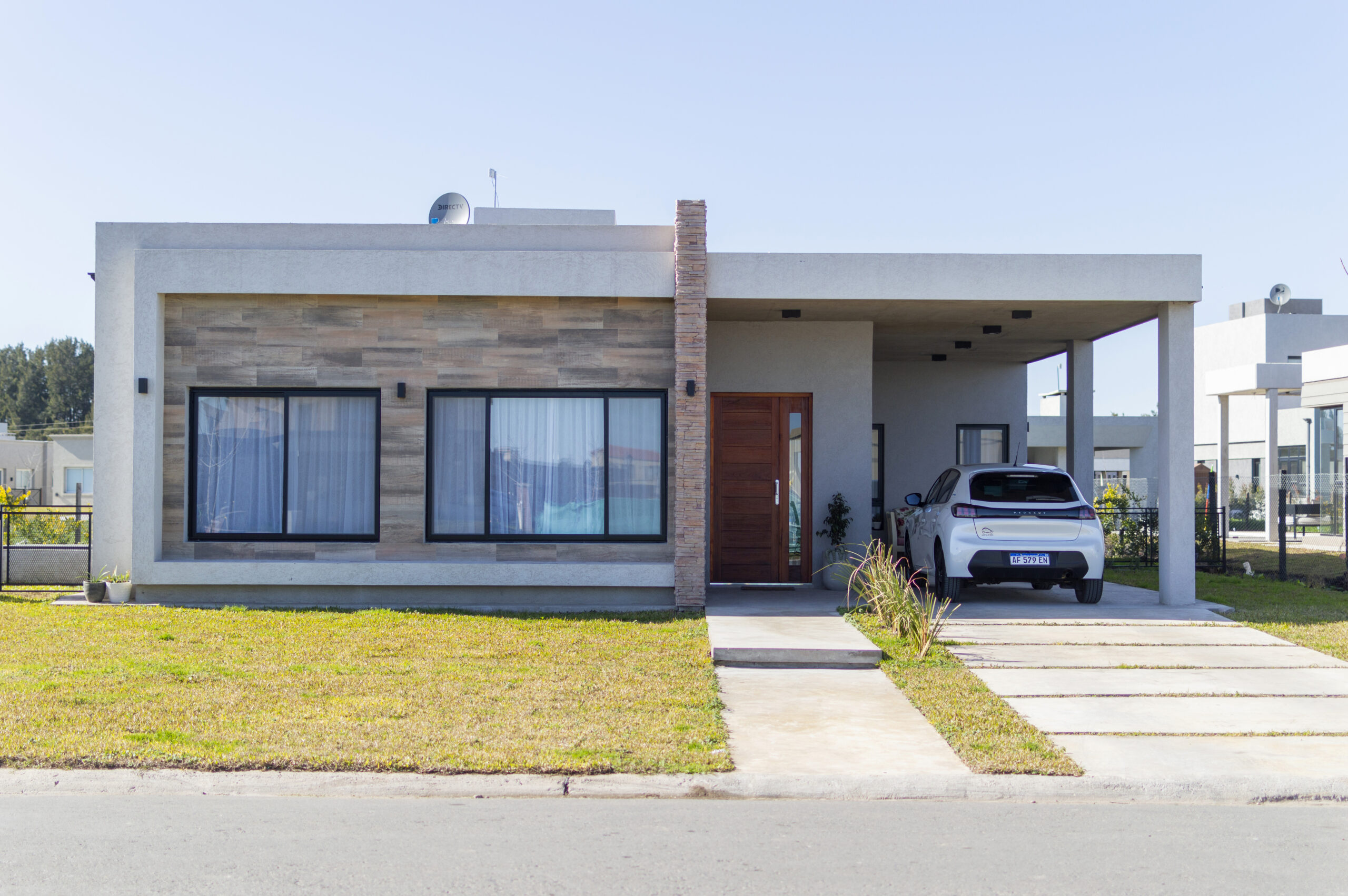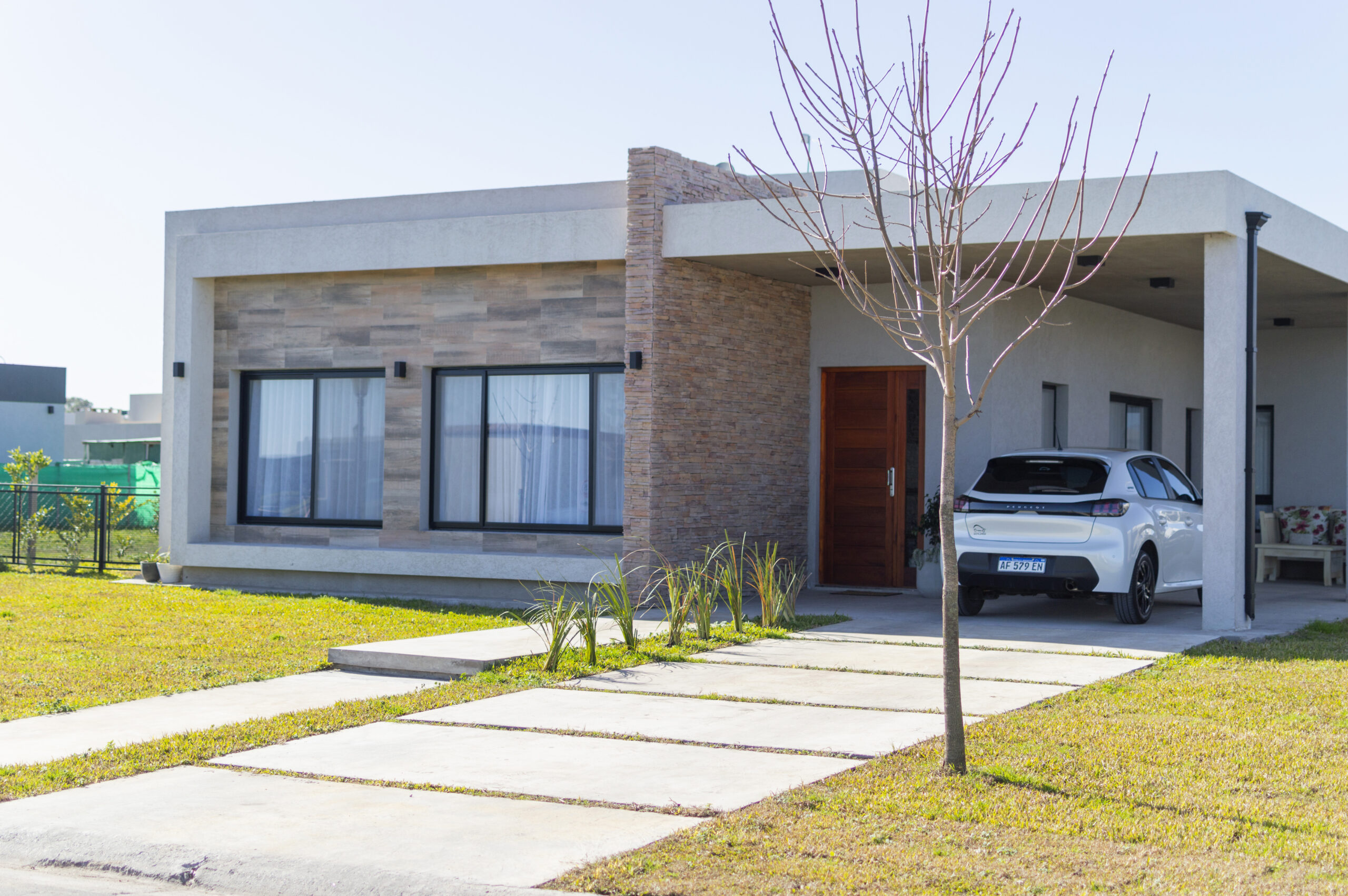 Diseñada en una sola planta, esta vivienda refleja una mirada moderna sobre el confort y la funcionalidad cotidiana. Con un estilo arquitectónico contemporáneo, amplios espacios y abundante iluminación natural, fue pensada para acompañar los momentos en familia y promover una experiencia de hogar completa. Al ingresar por el frente, un porche cubierto da paso a un ambiente principal totalmente integrado, donde conviven armónicamente el living, el comedor y la cocina. Cada sector mantiene su propio carácter y se comunica de manera fluida, generando una sensación de amplitud y dinamismo que invita a disfrutar cada rincón. Hacia el sector privado, la distribución contempla un baño principal, dos cómodos dormitorios con placard y una master suite que incluye vestidor y baño privado, creando un refugio íntimo y funcional para sus residentes. El exterior también fue cuidadosamente pensado: al frente, una cochera con capacidad para dos vehículos aporta comodidad diaria; al contrafrente, el quincho con parrilla y el lavadero contiguo completan el espacio de encuentro y servicio. El parque, protagonista del entorno, alberga una piscina de 8x4 construida en hormigón, convirtiéndose en el corazón recreativo del hogar. Un diseño que apuesta al disfrute integral y al equilibrio entre estética, practicidad y calidad de vida.